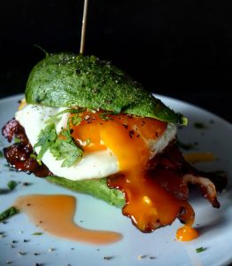 Zapiekane awokado jako艣 do mnie nie przemawia ale u偶ycie go jako „bu艂ki” wype艂nionej boczkiem, serem i jajkiem jak najbardziej 馃榾