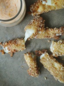 Paluszki z mozzarelli panierowane w skórkach wieprzowych chodziły za mną od daaawna. No i mnie rozczarowały szczerze mówiąc. Niewielka z pozoru porcja jest nie do przejedzenia, ma strasznie dużo białka i masę kcal. Co prawda do tego przepisu już nie wrócę, ale świetnie mi udowodnił, że pokruszone skórki wieprzowe mogą godnie zastąpić bułkę tartą w panierce. Jeśli zdecydujecie jednak na ich wykonanie to nie zapomnijcie o wyrazistym sosie!