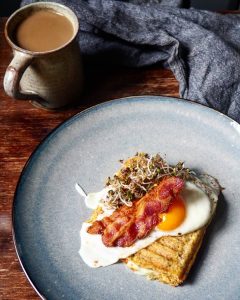 Tym razem z lazurem, chrupiącym boczkiem, jajkiem sadzonym i kiełkami gorczycy