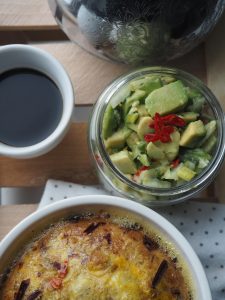 Jajka zapiekane w kokilce z sałatką z awokado