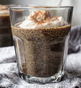 Nasiona wymieszać z przestudzoną kawą, wodą kokosową i mlekiem. Rozdzielić na 2 porcje i odstawić do lodówki na minimum 3h
